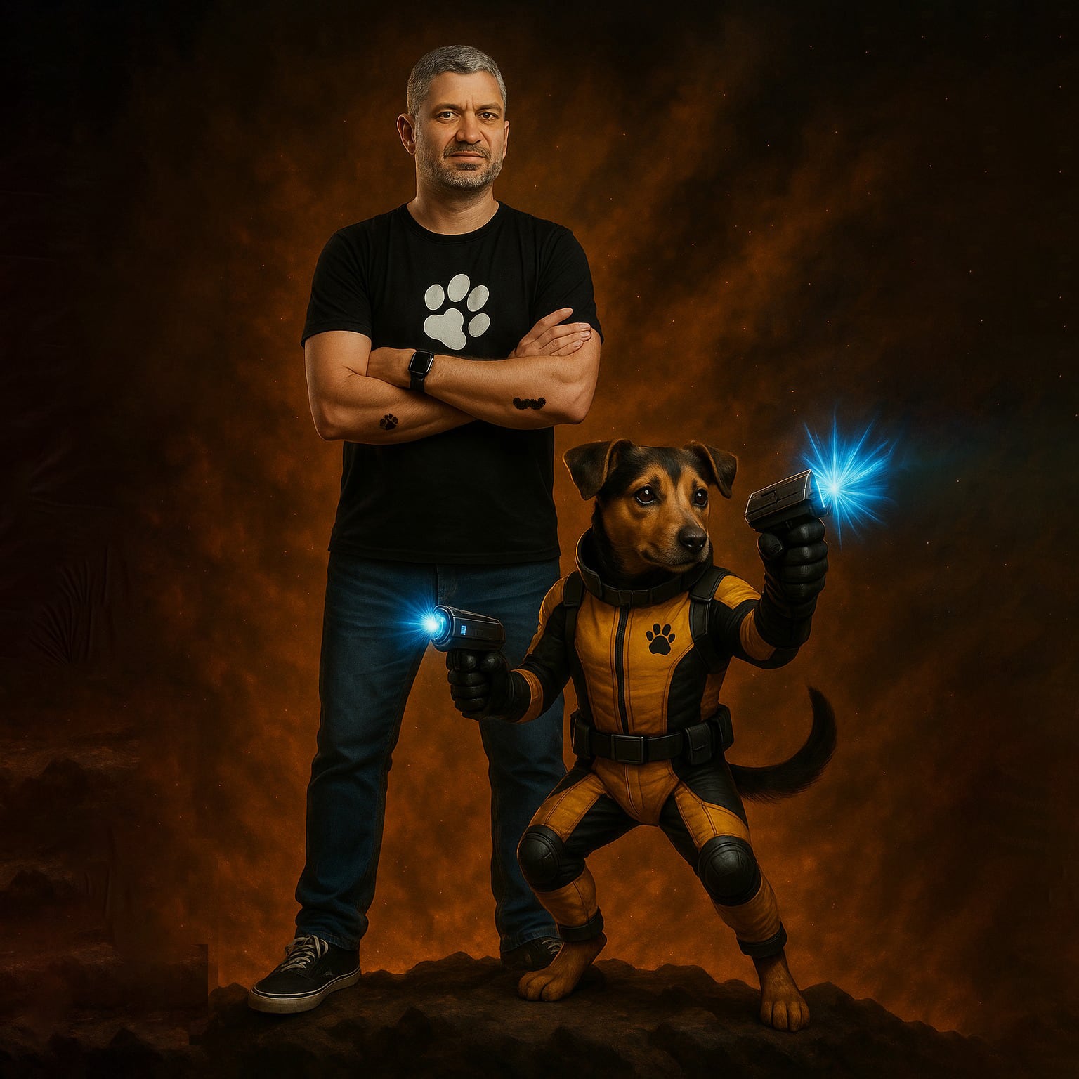 O publicitário e cartunista Tiago de Moraes das Chagas, fundador da Mustache Marketing e da Mustache Comics, é o tutor e criador que transformou a convivência com Pituco em um legado cultural.