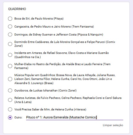 1. A primeira opção do formulário já é a categoria “Quadrinho”
